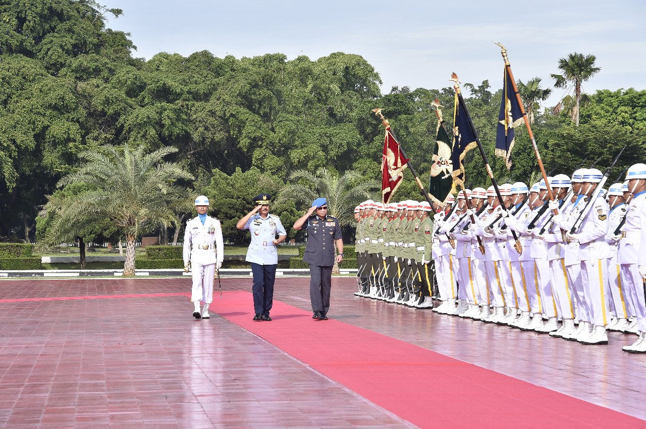 Panglima TNI Marsekal TNI Hadi Tjahjanto, menerima kunjungan kehormatan Panglima Angkatan Tentera Malaysia (ATM) YBhg Jeneral Tan Sri Dato’ Sri Haji Affendi Bin Buang di Mabes TNI, Cilangkap, Jakarta Timur, Jum’at (7/2/2020).