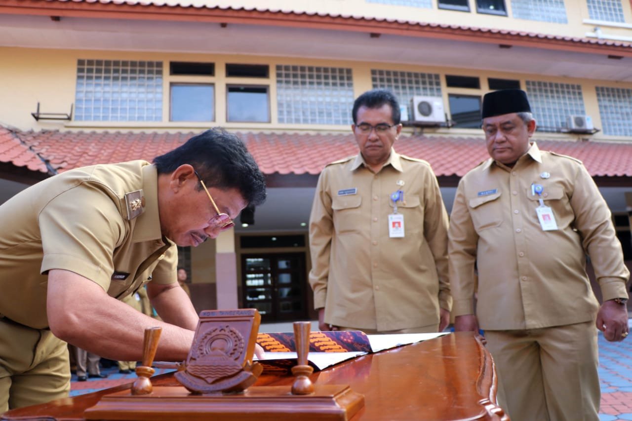 Sebanyak 102 pejabat tinggi pratama di lingkungan Pemerintah Kota (Pemkot) Tangerang mengucapkan sumpah usai dilantik oleh Wakil Walikota Tangerang, Sachrudin, Senin (10/02/2020) apel pagi.