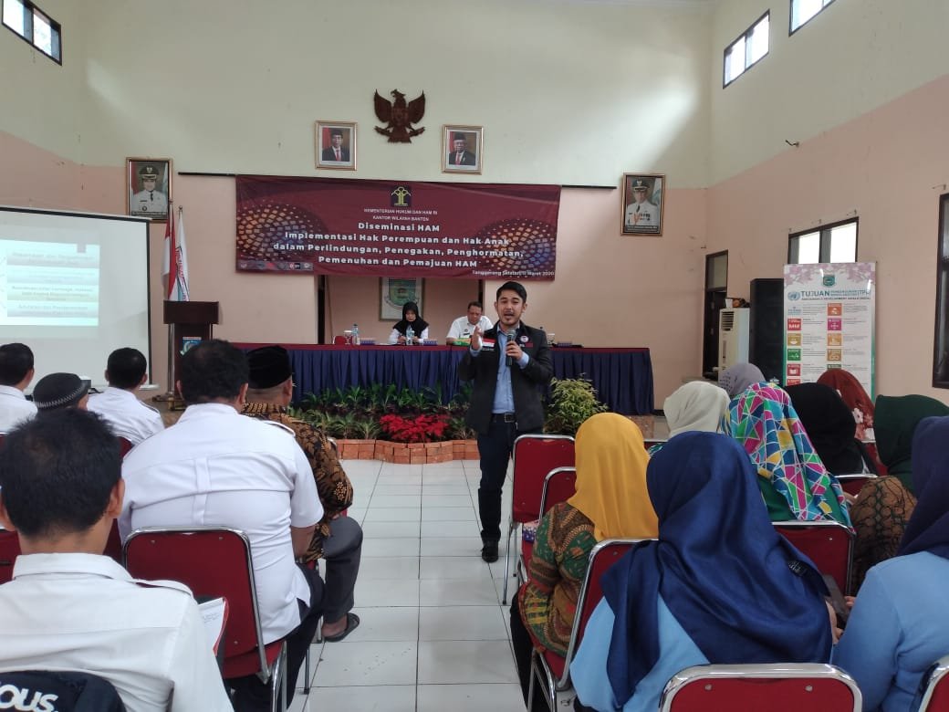 Dalam rangka mensosialisasikan kebijakan hukum tentang perlindugan anak dan perempuan khususnya di Kota Tangsel, Kementerian Hukum dan Ham Kantor Wilayah (Kanwil) Banten, menggelar seminar Desimenisasi HAM Implementasi Hak Perempuan dan Hak Anak Dalam Perlindungan, Penegakkan, Penghormatan, Pemenuhan, dan Pemajuan HAM, di Kantor Kecamatan Serpong Utara, Rabu (12/03/20).