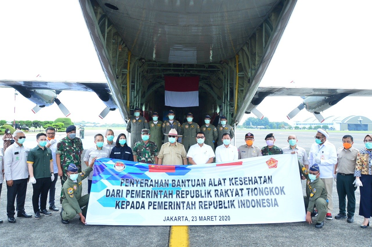 Menteri Pertahanan (Menhan) Prabowo Subianto atas nama pemerintah RI menyampaikan ucapan terima kasih kepada jajaran TNI yang telah bekerja keras membawa logistik kesehatan dari Tiongkok ke Indonesia untuk penanganan Covid-19.