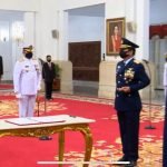 Panglima TNI Marsekal TNI Dr. (H.C) Hadi Tjahjanto, menjadi saksi pada pelantikan Laksamana TNI Yudo Margono, sebagai Kepala Staf Angkatan Laut (Kasal) dan Marsekal TNI Fadjar Prasetyo, sebagai Kepala Staf Angkatan Udara (Kasau) oleh Presiden RI Joko Widodo, bertempat di Istana Negara, Jakarta Pusat, Rabu (20/5/2020).