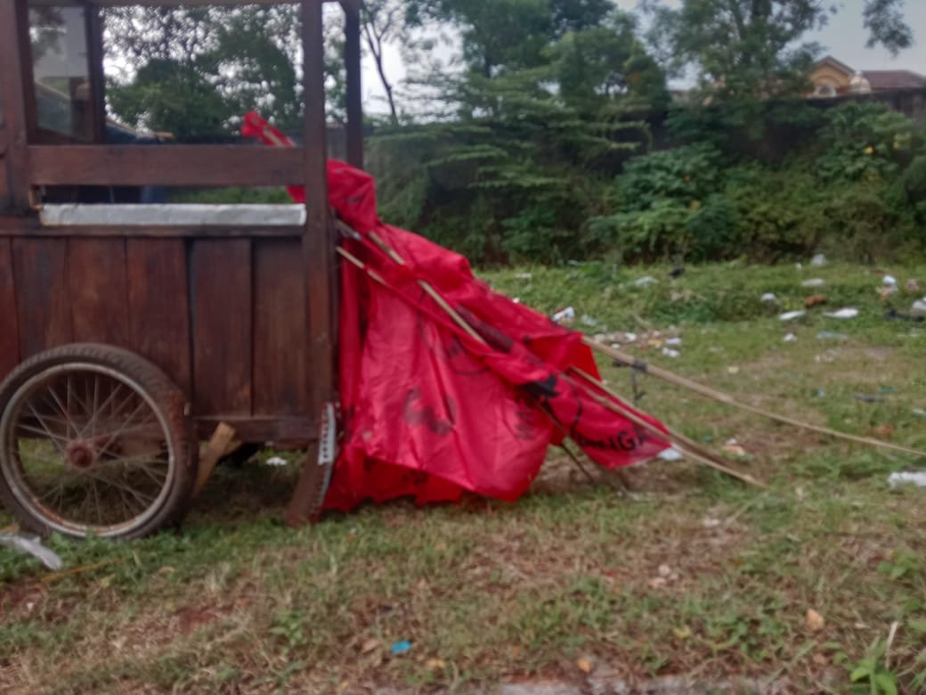 Taufiq (45) driver Ojol menemukan bendera PDIP berserakan tak jauh dari tempat pembakaran sampah depan Polres Tangerang Selatan di Lengkong Gudang, Kamis (2/7/2020) sore.