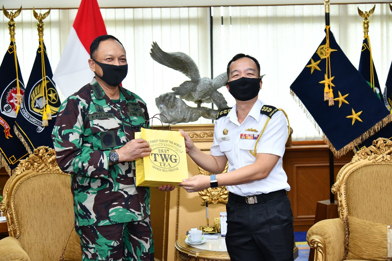 Kepala Staf Angkatan Udara (Kasau) Marsekal TNI Fadjar Prasetyo, menerima kunjungan Atase Pertahanan Udara Kolonel Nicholas Lim dan Atase Udara (Athud) Singapura Letkol Davis Lee Kim, di Mabesau Cilangkap, Jakarta Timur, Selasa (14/7/2020).