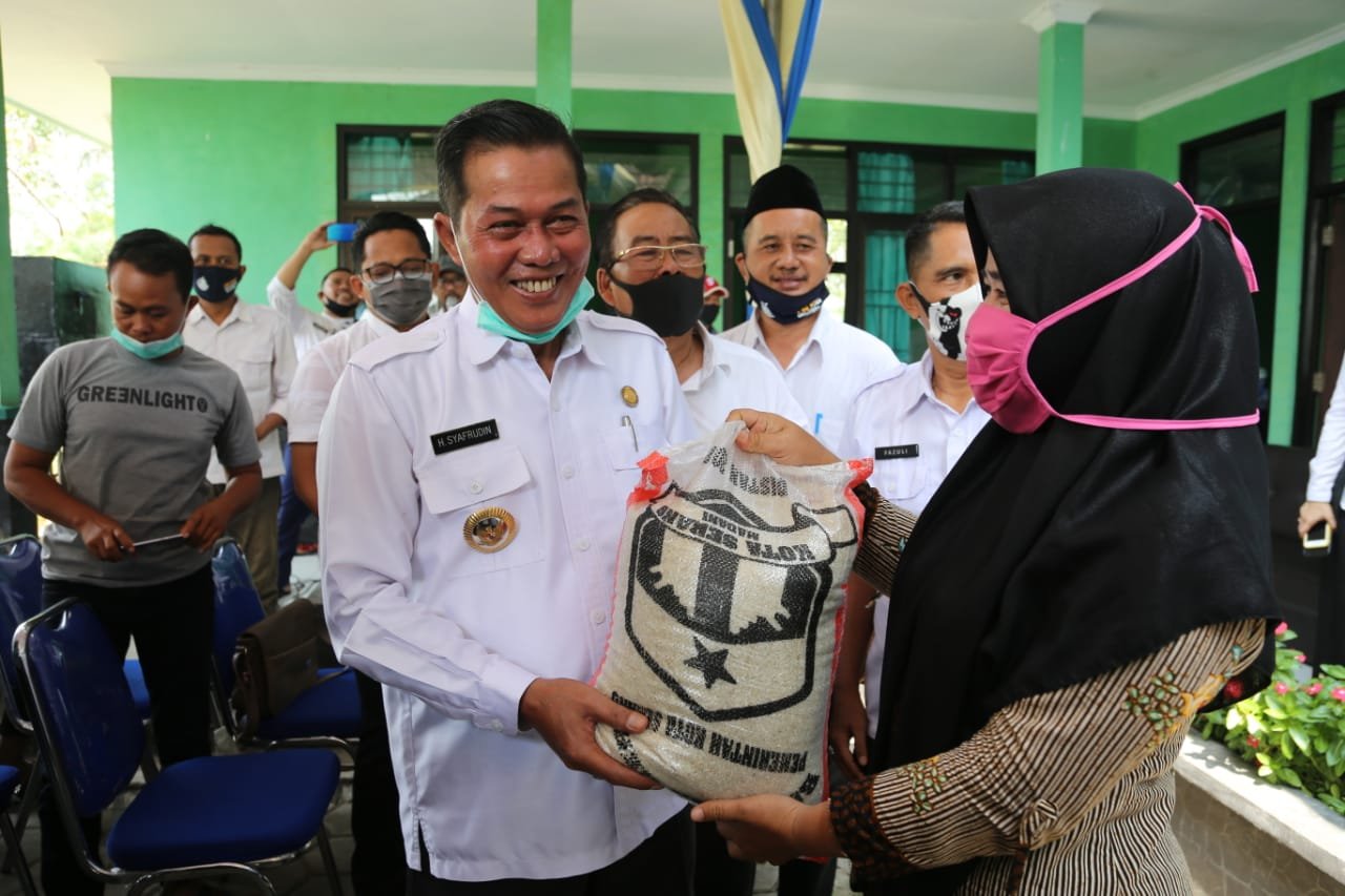 Pemerintah Kota (Pemkot) Serang melalui Dinas Pertanian membagikan 70 Ton beras kepada 70079 kelompok tani di Balai Penyuluhan Pertanian Kecamatan Kasemen, Kota Serang, Rabu (12/8).