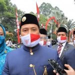 Camat Sukadiri Yandri Permana jadi Inspektur Upacara (Irup) penurunan bendera Merah Putih. Kegiatan ini merupakan sebagai penutup rangakain peringatan HUT RI Ke-75 dilapangan Stadion Petal, Desa Sukadiri, Kecamatan Sukadiri, Kabupaten Tangerang, Senin (17/82020).