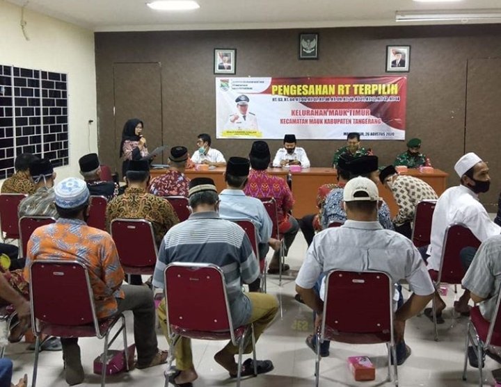 Pelantikan Ketua RT 03, 04, 06, 07, 08, 09, 10, 11, 12, 13, dan14, Kelurahan Mauk Timur, Kecamatan Mauk, Kabupaten Tangerang, dilantik dan resmi bertugas memimpin warganya. Acara pelantikan berlangsung di Aula Kantor Kelurahan Mauk Timur, Rabu (26/8/2020), sekira pukul 20.00 WIB.