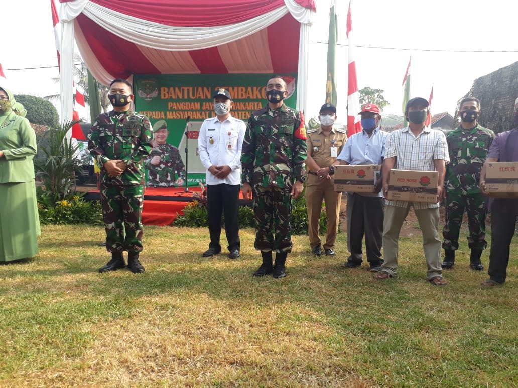 Pangdam Jaya Mayjen TNI Dudung Abdurachman bakti sosial dengan menyalurkan 10000 paket sembako di Kampung Larangan, Kelurahan Sukatani, Kecamatan Rajeg, Kabupaten Tangerang, Selasa (1/9/2020).
