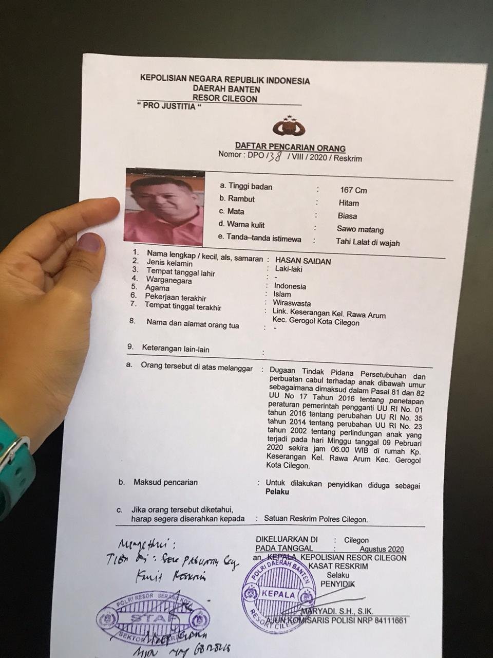 Pasalnya informasi yang berhasil di himpun, Polres Cilegon telah ditetapkan sebagai daftar pencairan orang (DPO). Dengan surat Nomor: DPO 138/VIII/2020/Reskrim.