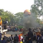 Tampak dengan gagah berani, Ketua DPRD Provinsi Sumatera Barat hadir menemui aksi mahasiswa di DPRD Provinsi Sumatera Barat, Rabu, 7 Oktober 2020.