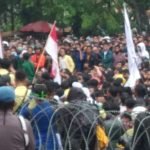 “Kami minta besok polisi jangan ikut campur, jangan dihalangi. Kalau besok dihalangi kami lawan,” ujar Ari Dwi, koordinator aksi mahasiswa Tangerang dalam pengeras suara.