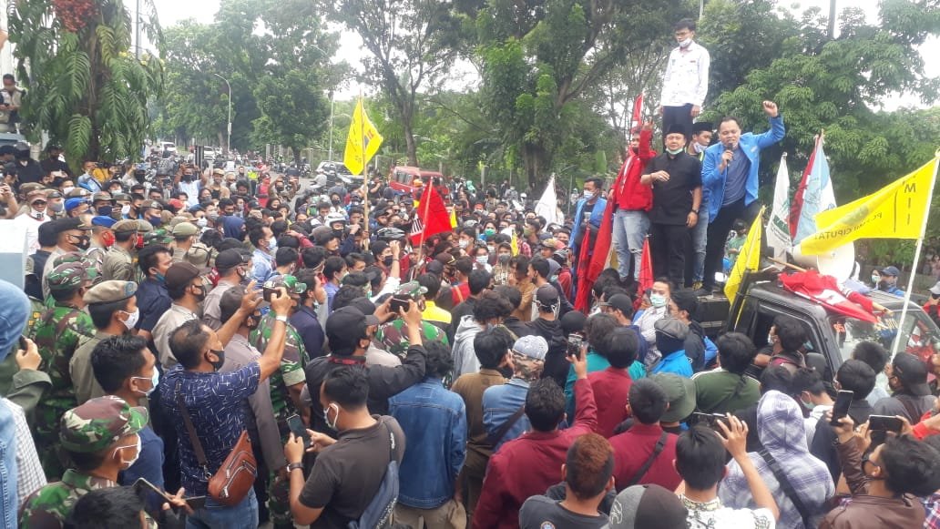 Mereka menuntut pengesahan Undang-Undang Omnibus Law Cipta Kerja yang dianggap merugikan dan tidak memihak kepada rakyat.