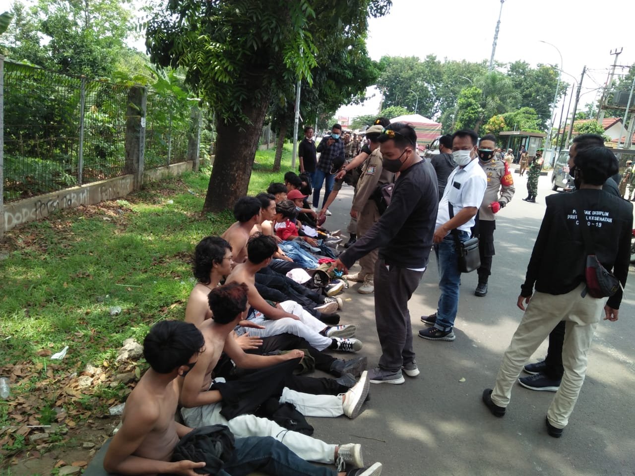 Puluhan remaja yang mengaku pelajar diamankan polisi dan Satpol PP Tangerang Selatan (Tangsel) saat hendak melintas menumpangi sebuah truk di Jalan Raya Serpong, tepatnya di Depan Gedung DPRD Kota Tangsel, Kecamatan Setu, Kamis (08/10/2020).