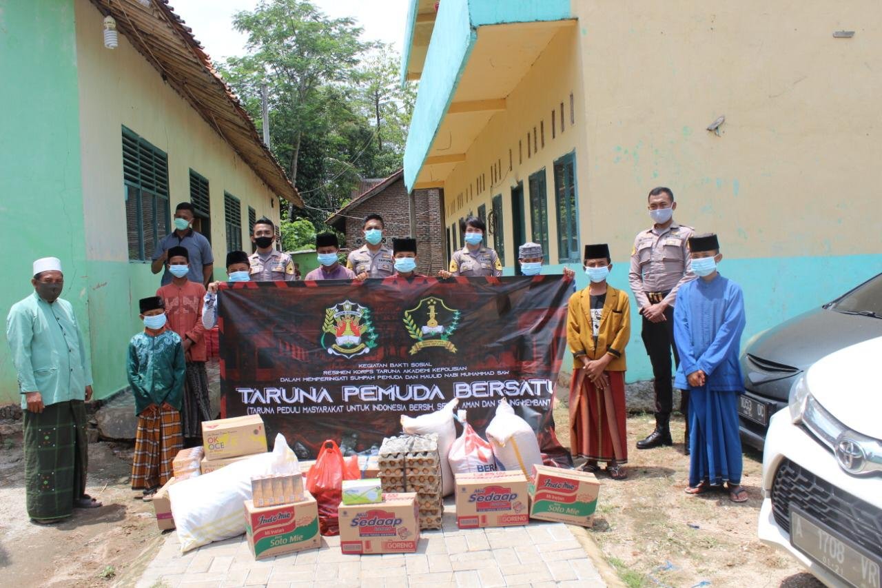 Memperingati Hari Sumpah Pemuda dan Maulud Nabi Muhammad SAW, Taruna Akademi Polisi (Akpol) Polda Banten melaksanakan Bakti Sosial berupa pembagian paket sembako dan 100 Masker di Pesantren An-Nur, Kampung Jaha Kelurahan Pager Agung, Kecamatan Walantaka Kota Serang, Kamis, (29/10)