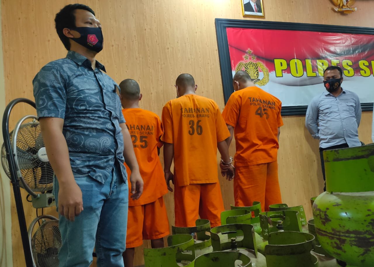 Ketiga tersangka yang berhasil ditangkap IS (43), warga Desa Teritih, Kecamatan Walantaka, Kota Serang, Suh (35), Desa Cigoong, Kecamatan Walantaka, Kota Serang serta Yu (35), warga Kelurahan Cilaku, Kecamatan Curug, Kota Serang. Dari ketiga pelaku diamankan barang bukti 1 unit kendaraan sebagai sarana kejahatan, 39 tabung gas 3 kg serta 2 batang besi panjang untuk merusak gembok.