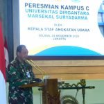 Kepala Staf Angkatan Udara (Kasau) Marsekal TNI Fadjar Prasetyo, meresmikan kampus C Universitas Suryadarma (Unsurya) di Gedung Auditorium Denma Mabesau, Cilangkap, Jakarta Timur, Selasa (24/11/2020).