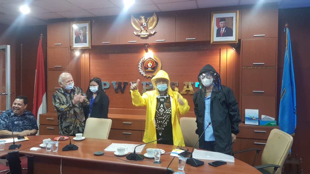 JAKARTA-Pengurus Pusat Persatuan Wartawan Indonesia (PWI) menerima 140 jacket alat pelindung diri (APD) yang disumbangkan oleh PT Sinar Harapan Media. Sumbangan tersebut diserahkan Selasa siang (5/01) di kantor PWI Pusat yang diterima oleh Ketua Umum PWI Pusat Atal Sembiring Depari