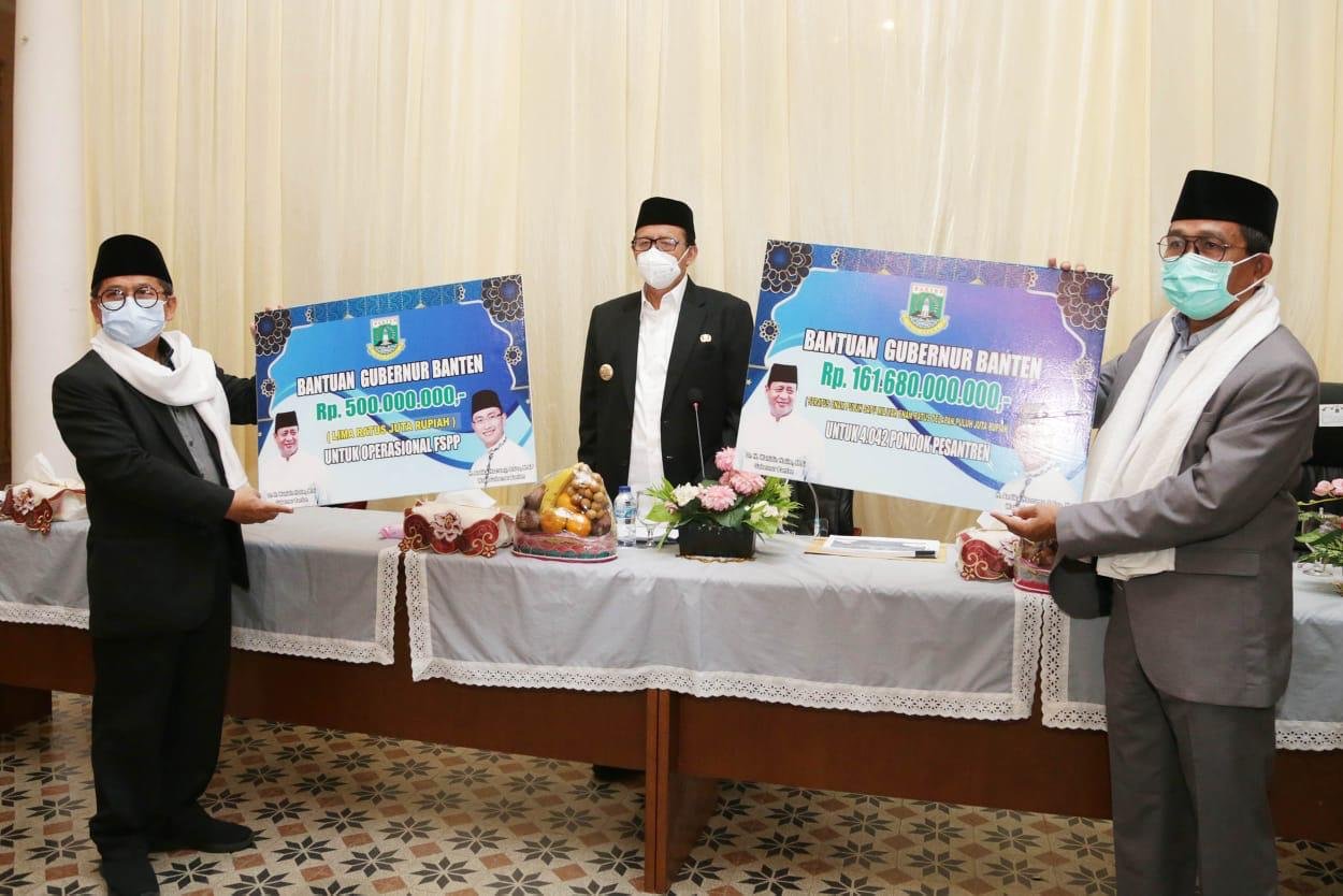 Pemerintah Provinsi (Pemprov) Banten gelontorkan bantuan kepada Pondok Pesantren (Ponpes) di Provinsi Banten senilai Rp.161,68 miliar. Hal itu diungkapkan Gubernur Banten, Wahidin Halim (WH) saat Rapat Kerja II Pengurus Forum Silaturrahim Pondok Pesantren (FSPP) Provinsi Banten Masa Khidmat 2020 – 2025 di Gedung Negara Provinsi Banten Jl. Brigjen KH Syam’un No.2 Kota Serang, Rabu (20/1).