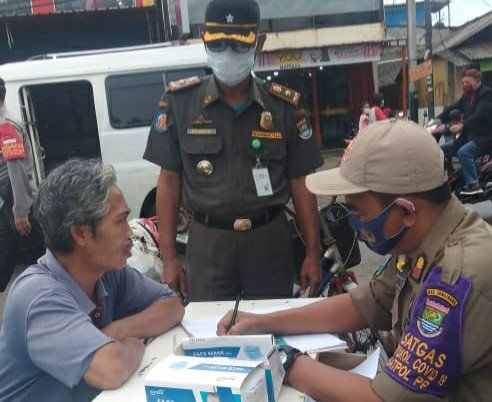 Satgas Covid-19 Kecamatan Pasarkemis, Kabupaten Tangerang terus melakukan operasi yustisi penerapan disiplin protokol kesehatan, untuk menekan penyebaran Virus Corona (Covid-19) di beberapa titik wilayah Kecamatan Pasar Kemis termasuk di Kawasan Industri Chingluh Desa Suka Asih, Rabu (27/1/2021).