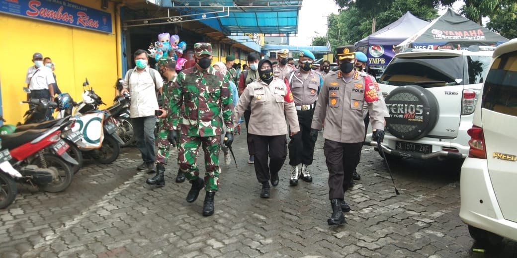 Kapolres Metro Kota Depok, Kombes Pol Imran Edwin Siregar bersama Dandim 0508 / Depok, Kolonel Inf Agus Isrok Mikraj, melalukan sidak di sejumlah pasar di wilayah Depok, diantaranya Pasar Depok Jaya dan Pasar Lama Dewi Sartika.
