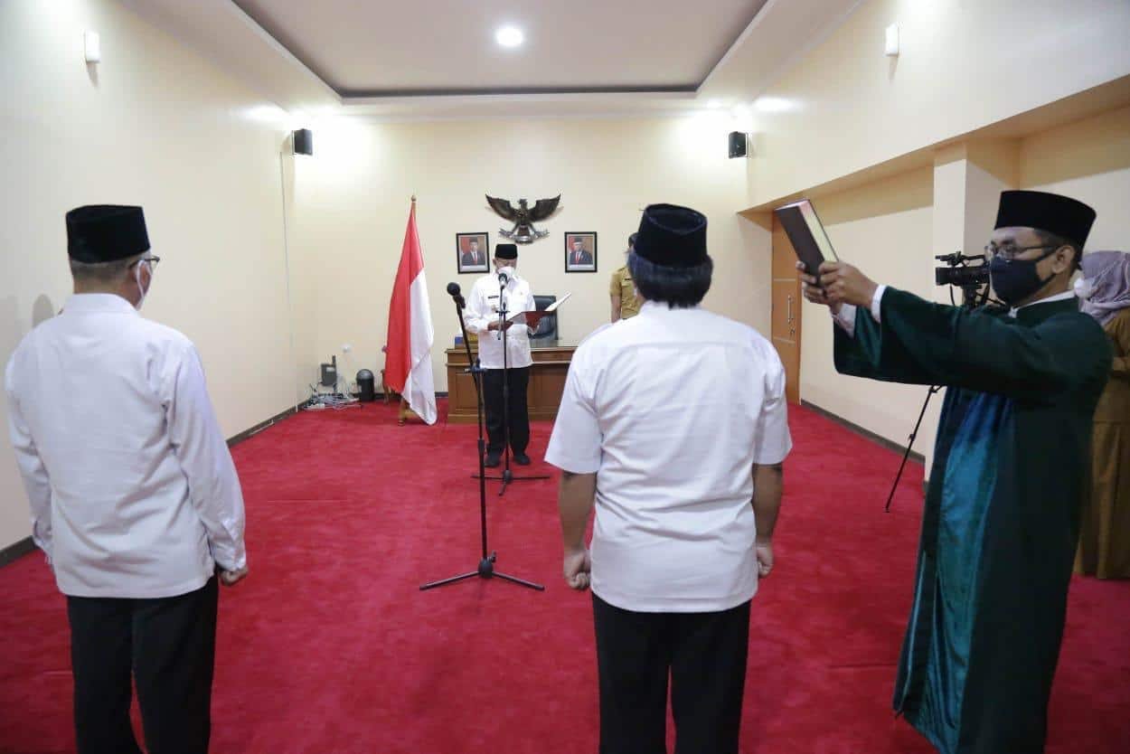 Dalam kesempatan itu, Gubernur mengajak kedua pejabat yang baru dilantik dan hadirin membaca Al Fatihah untuk mengawali dan memperlancar tugas dan amanah yang baru diemban.