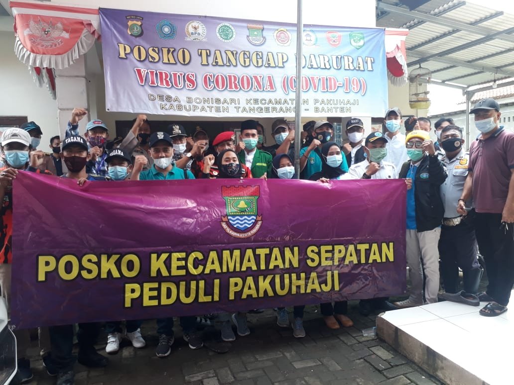 Bantuan diserahkan langsung oleh Camat Sepatan Dadang Sudrajat yang didampingi Sekcam Sepatan, Kapolsek Sepatan, Danramil 10/Sepatan, dan Staf, bantuan langsung diterima oleh Camat Pakuhaji Asmawi.