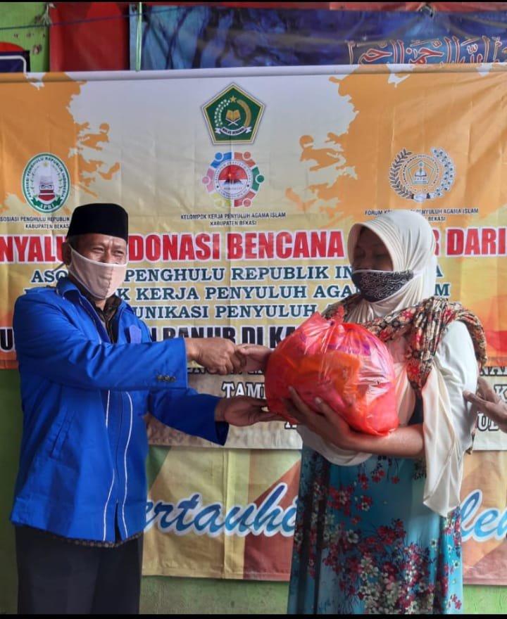 Tim Tagana dari 3 lembaga organisasi di bawah naungan Kementerian Agama Kabupaten Bekasi: APRI (Asosiasi Penghulu Republik Indonesia), POKJALUH (Kelompok Kerja Penyuluh) dan FKPAI (Forum Komunikasi Penyuluh Agama Islam) Kabupaten Bekasi, berikan bantuan kepada korban banjir di tiga desa diantaranya, Desa Simpangan, Desa Tanjungsari dan Desa Kedungwaringin.
