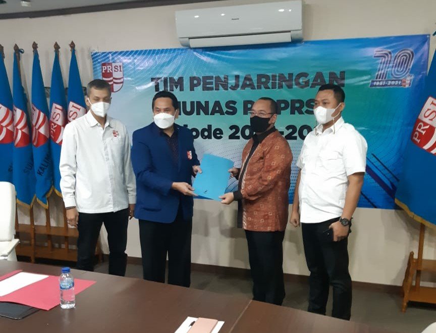 Sarman Simanjorang Selaku ketua panitia pengarah dan penjaringan caketum PRSI menerima berkas pendaftaran Wibisono yang selanjutnya akan ditindak lanjuti di forum Munas.