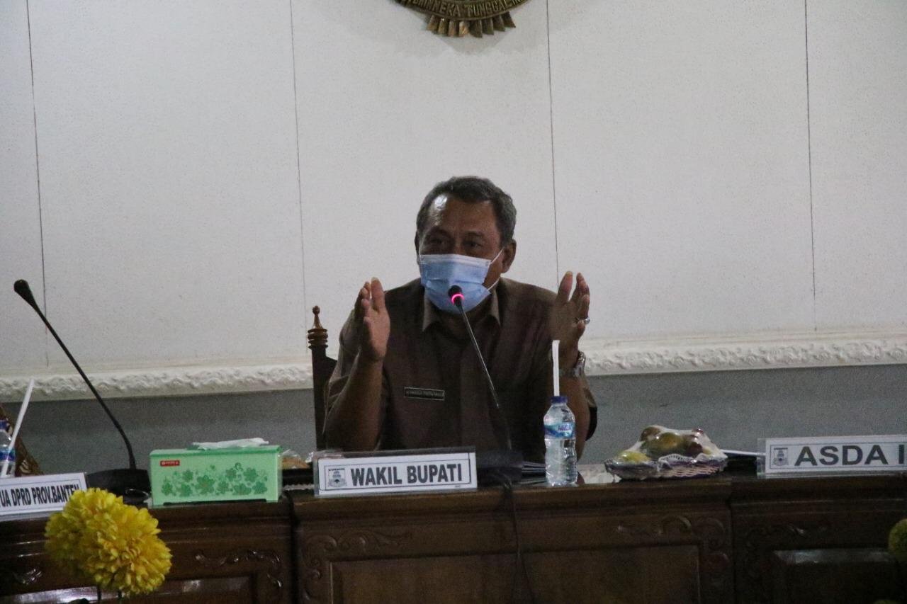 Wakil Bupati Serang Pandji Tirtaya mengeluhkan persoalan sampah kepada anggota DPRD Provinsi Banten, saat menyerap aspirasi pembangunan Pememerintah Kabupaten (Pemkab) Serang, masa reses persidangan kedua tahun 2020-2021 di Aula KH. Syam’un, Serang, Selasa (2/3).