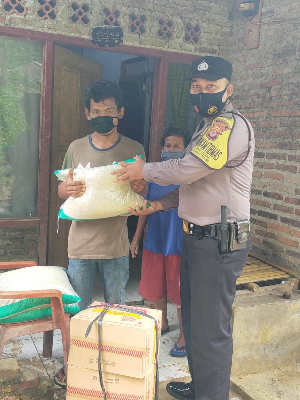 Bantuan berupa beras dan mie instan diserahkan oleh Bhabinkamtibmas Briptu Iman Solichin kepada korban tanah longsor.