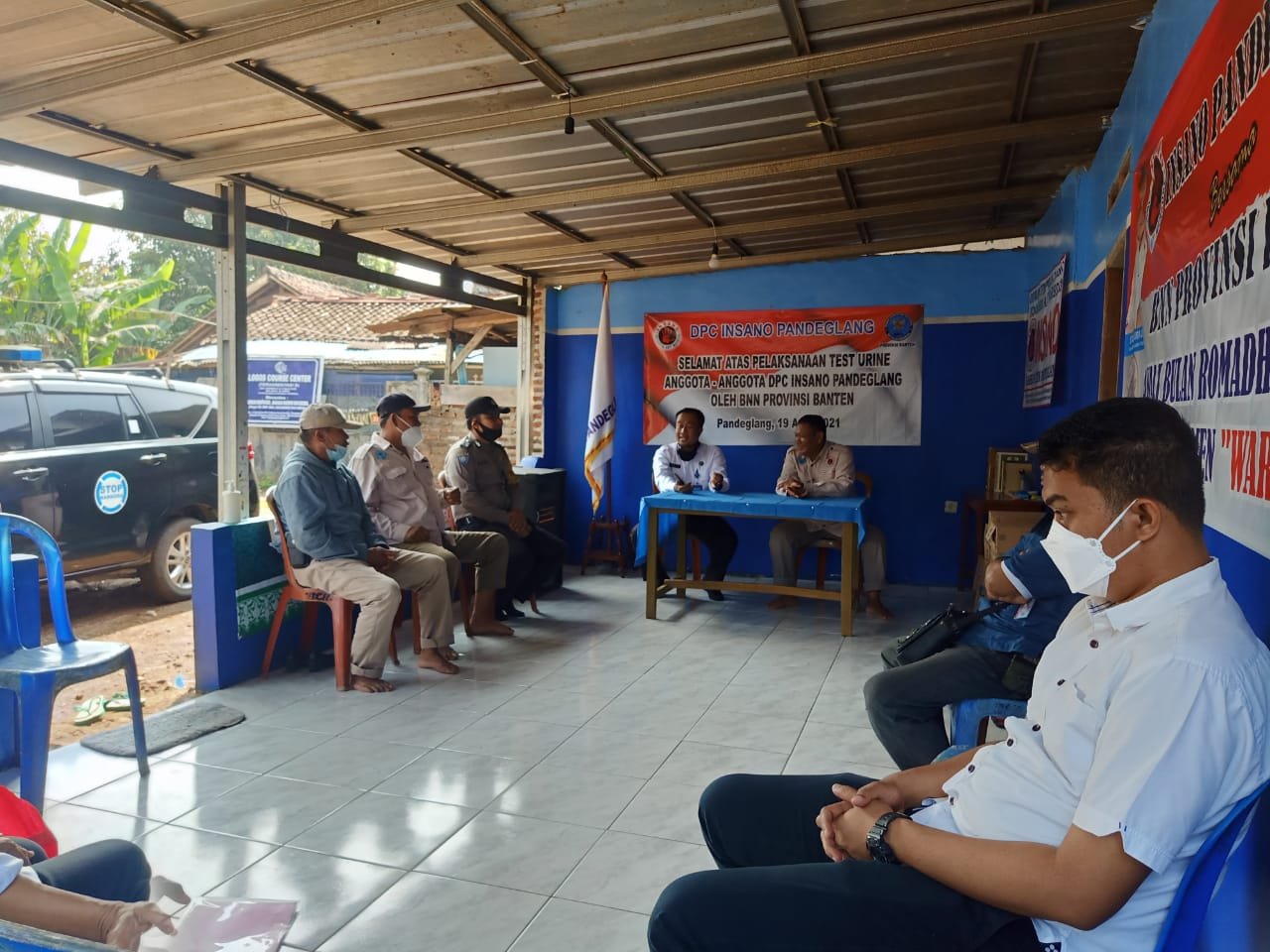 Badan Narkotika Nasional (BNN) Provinsi Banten terus roadshow melakukan tes urine kesetiap kecamatan di wilayah Kabupaten Pandeglang dengan menggandeng elemen masyarakat yang konsisten memerangi peredaran narkotika tersebut. Salah satunya melakukan tes urine kepada anggota ormas Indonesia Anti Narkoba (Insano) Banten di sekertariat Bojongcanar di Kecamatan Cikedal, Kabupaten Pandeglang. Hal ỉtu disampaikan Yaya S selaku Koordinator P2M BNN Provinsi Banten kepada media, Senin (19/04/21).