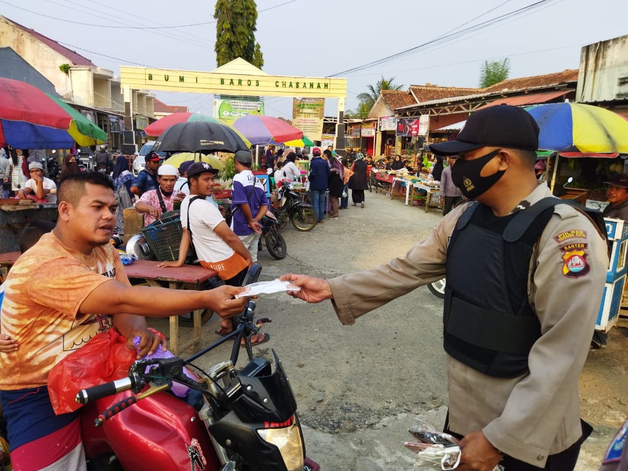 Dalam pembagian masker ini dipimpin langsung Kapolsek Baros AKP Lenggana Wahyu Bintarna S.I.P, bêserta Kanit Sabara Polsek Baros Iptu M Erlani, Humas Polsek Baros Bripka F Kartiwa dan Bhabinkamtibmas Polsek Baros Brigpol Erwin.