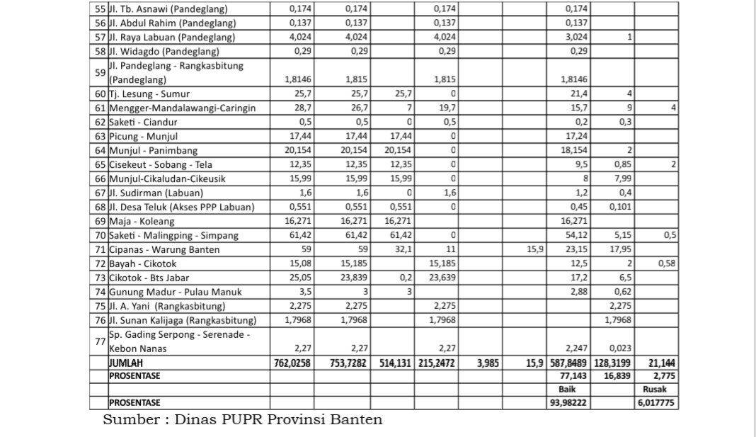 Pada akhir tahun 2021, kondisi infrastruktur jalan kewenangan Pemprov Banten ditargetkan 100% baik alias mantap (Adv).