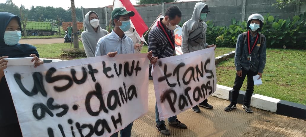 Para mahasiswa meminta Kejari Tangsel agar transparan soal kasus dugaan korupsi dana hibah tahun 2019 pada Komite Olahraga Nasional Indonesia (KONI) Tangsel.