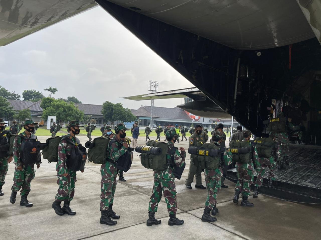 Para nakes diberangkatkan menggunakan dua pesawat Hercules A-1328 dan A-1335 milik TNI AU dari Lanud Adi Sucipto Yogyakarta menuju Lanud Halim Perdanakusuma Jakarta. (MRZ)