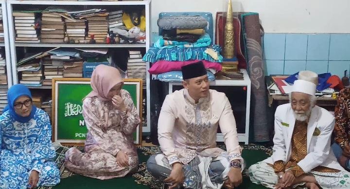 Ketua Umum (Ketum) Partai Demokrat Agus Harimurti Yudhoyono (AHY) mendatangi rumah Ulama Banten Karismatik Abuya Muhtadi di Kampung Cidahu, Kecamatan Cadasari, Kabupaten Pandeglang Banten, Senin (17/4/2023).