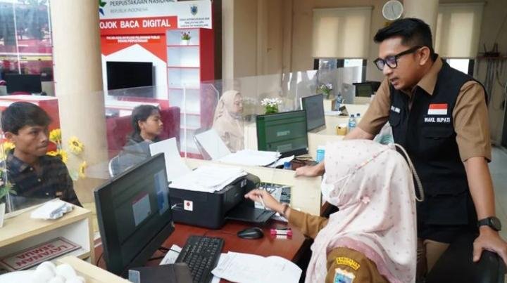 Wakil Bupati (Wabup) Pandeglang Tanto Warsono Arban melakukan inspeksi mendadak (sidak) di Kantor Dinas Kependudukan dan Pencatatan Sipil (Disdukcapil) Pandeglang dan gedung Mal Pelayanan Publik (MPP) Pandeglang, Senin (8/5/2023).