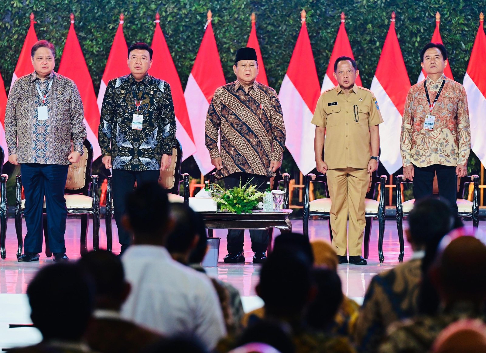 Rakornas dibuka Presiden Prabowo Subianto yang mengusung tema “Implementasi Asta Cita Menuju Indonesia Emas 2045”,