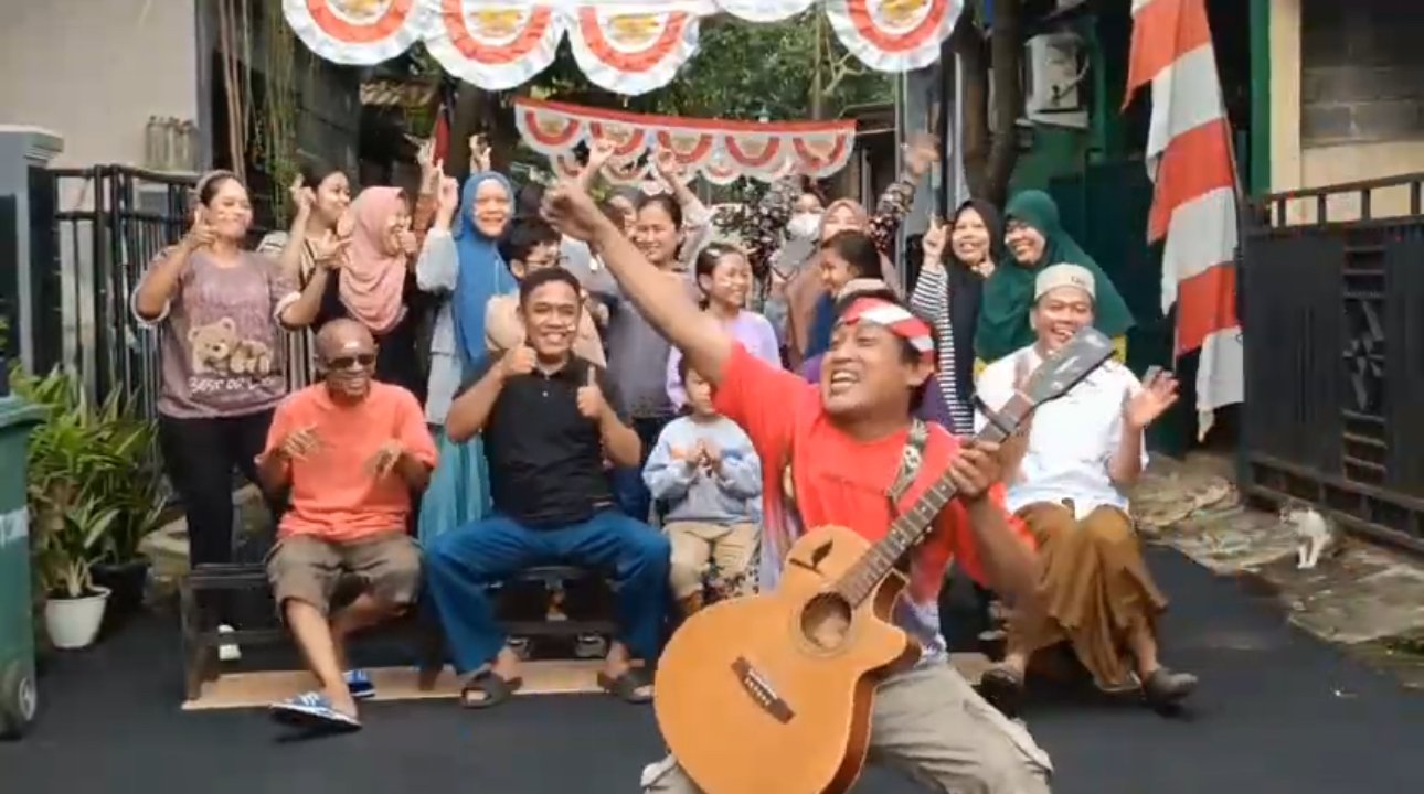 Dalam video berdurasi 51 detik yang beredar, tampak salah satu warga dengan gaya ekspresif memegang gitar, menghibur warga lainnya dengan aksi penuh canda. Ungkapan ini bukan hanya bentuk apresiasi, tetapi juga bagian dari perayaan Hari Kemerdekaan Republik Indonesia ke-80. (Untuk melihat video Klik di sini!)