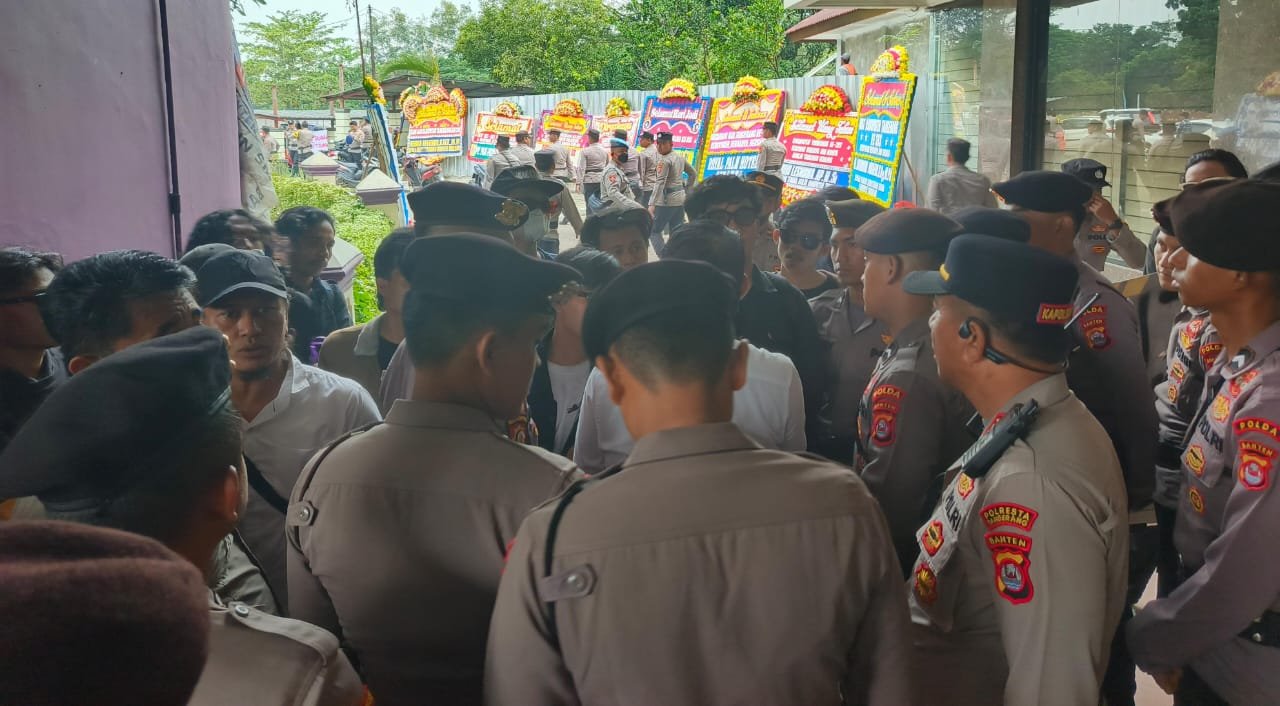 Sekelompok mahasiswa dari berbagai elemen berkumpul di Depan Gedung DPRD Kabupaten Tangerang pada Senin, (13/10/2025).