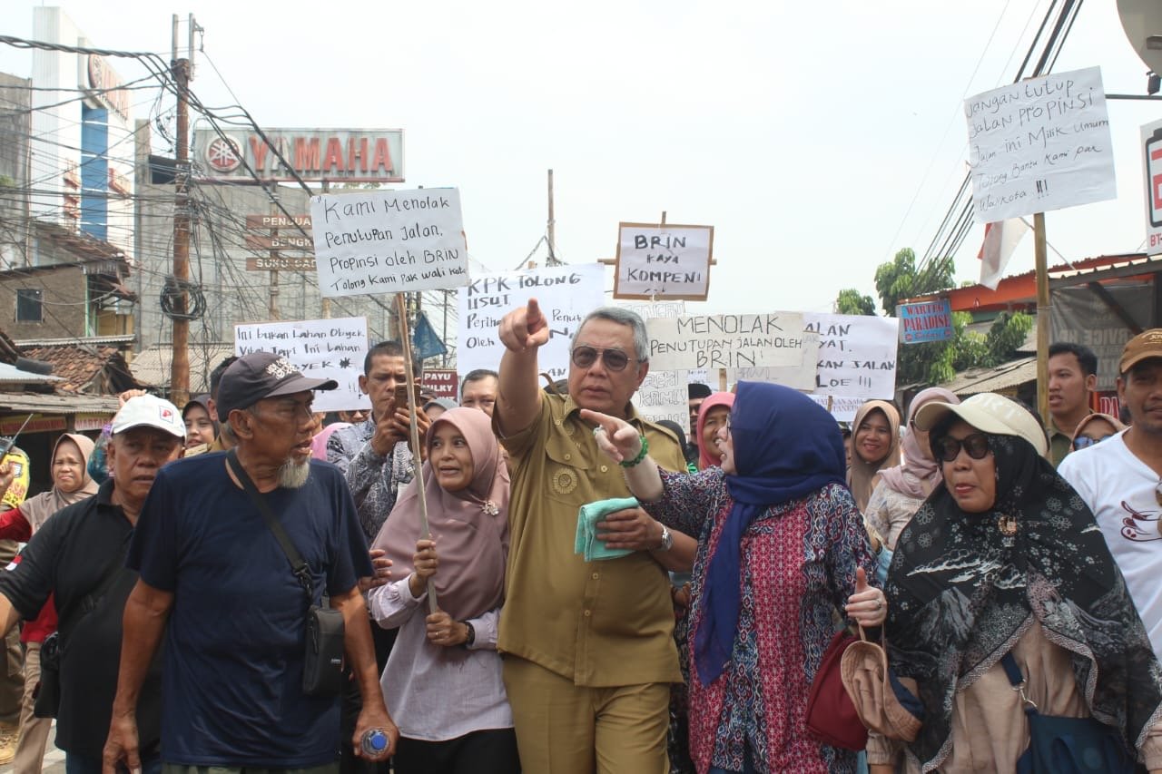 Aksi protes warga Kecamatan Setu, Kota Tangerang Selatan (Tangsel), terhadap rencana penutupan akses Jalan Raya Serpong–Parung oleh Badan Riset dan Inovasi Nasional (BRIN) semakin meluas. Tak hanya warga, Wali Kota Tangsel, Benyamin Davnie, juga ikut turun ke lapangan untuk mendukung langsung aspirasi masyarakat pada Senin (13/10/2025).