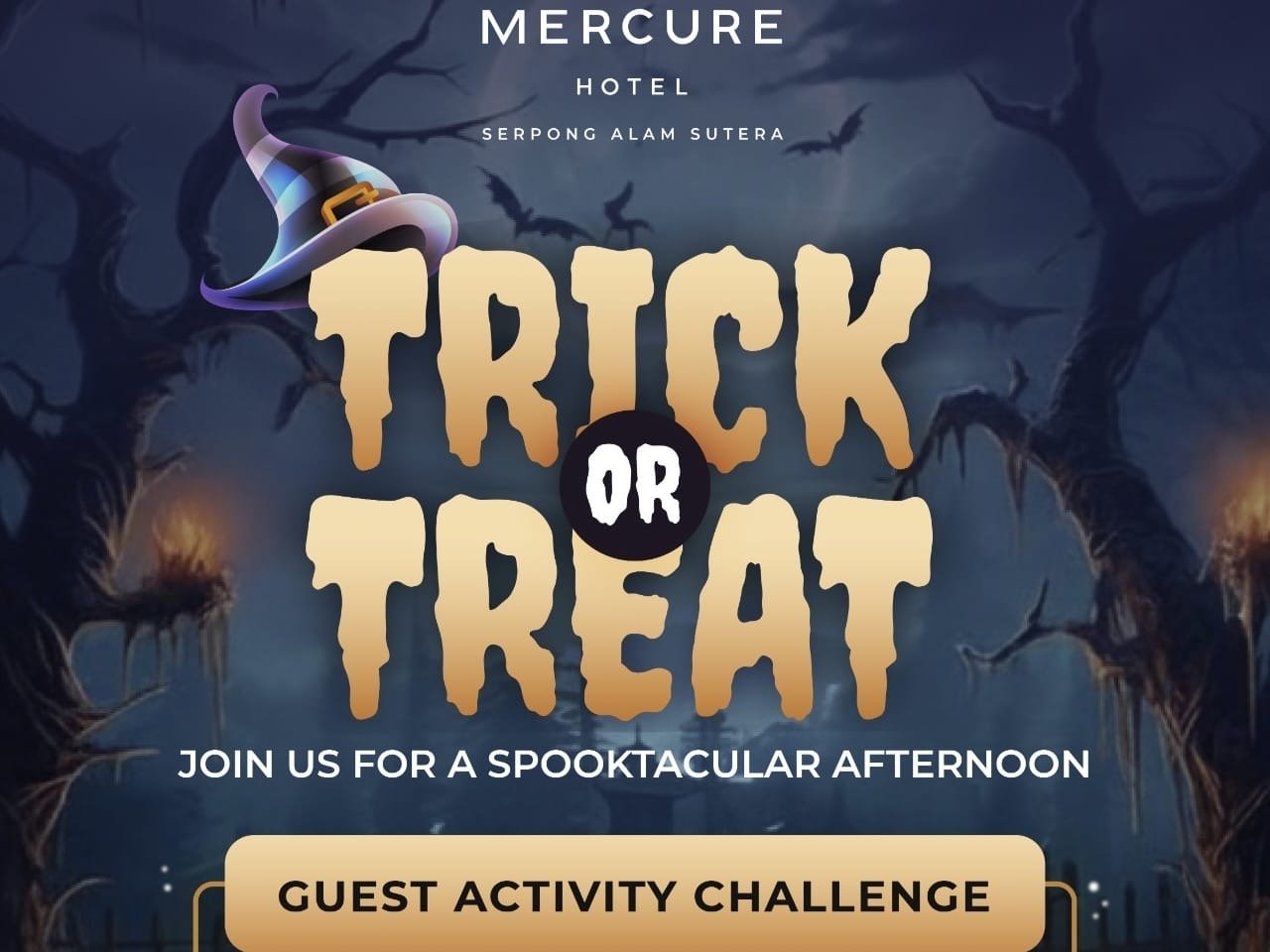Dalam rangka menyambut momen Halloween, Mercure Serpong Alam Sutera menghadirkan sebuah pengalaman menyenangkan bertajuk “Trick or Treat” khusus bagi para tamu. Acara ini akan berlangsung pada Sabtu, 1 November 2025, mulai pukul 14.00 hingga 16.00 WIB, bertempat di area lobby hotel.
