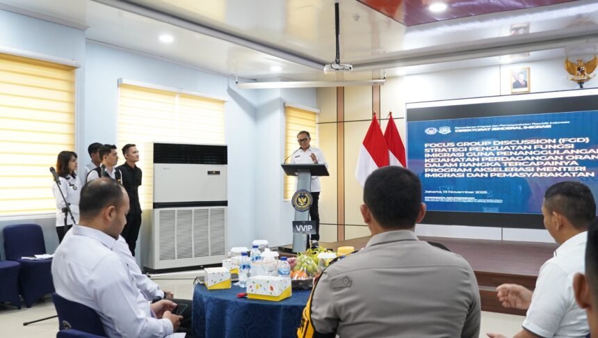 Komitmen tersebut diwujudkan lewat penyelenggaraan Focus Group Discussion (FGD) bertema “Strategi Penguatan Fungsi Imigrasi Guna Penanggulangan Kejahatan Perdagangan Orang” yang digelar di Aula Lantai 2 Kantor Imigrasi Soekarno-Hatta, Tangerang, Kamis (13/11/2025).