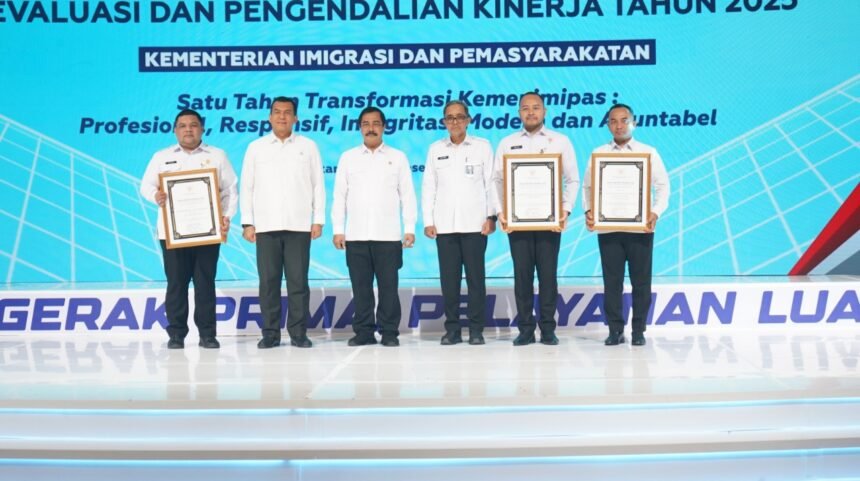 Penganugerahan berlangsung pada penutupan Rapat Koordinasi Evaluasi dan Pengendalian Kinerja Tahun 2025 bertema “Satu Tahun Transformasi Kemenimipas: Profesional, Responsif, Integritas, Modern dan Akuntabel” di Jakarta, Selasa, 16 Desember 2025.