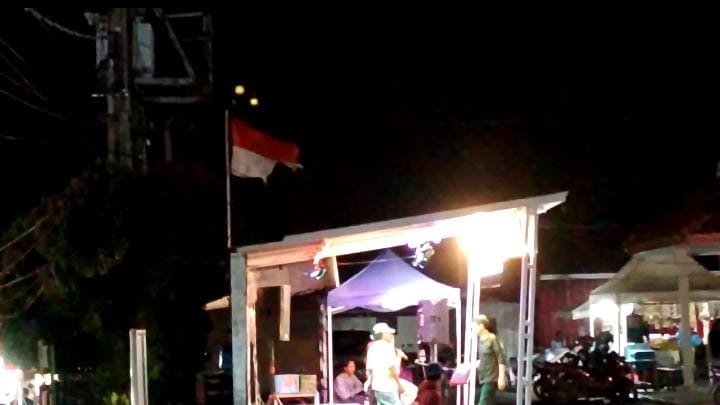 Berdasarkan pantauan di lokasi, bendera Merah Putih itu masih berkibar sejak siang hingga malam hari meski kondisinya terlihat kusam dan robek.