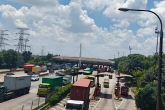 Arus Mudik Lebaran Idulfitri 2026, Didominasi Truk Bermuatan Barang di Gerbang Tol Cikupa